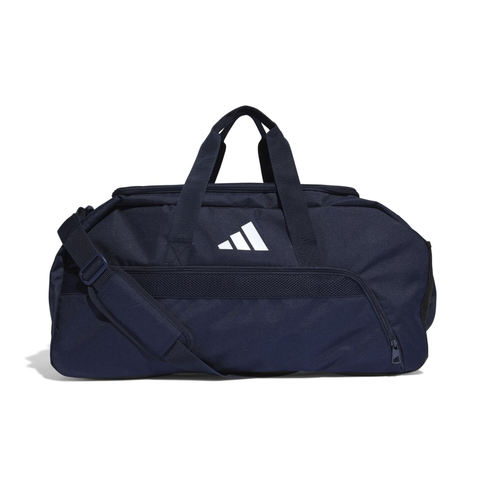Bolsa de deporte mediana Tiro League de Adidas en color azul marino combina elegancia y funcionalidad. Capacidad para un total de 39,5 litros y con compartimento ventilado para zapatos.