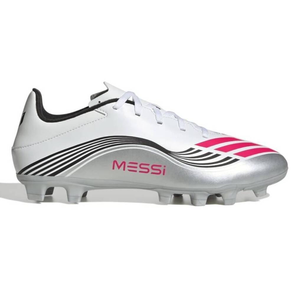 Juega como uno de los grandes con estas botas de fútbol F50 Messi Club FG para hombre de adidas. En color blanco, estas botas cuentan con una parte superior sintética resistente para un uso duradero. Tienen un cierre con cordones para que se ajusten bien, con una lengüeta ligera para una sensación sin distracciones. Cuentan con una suela con tacos versátil para una tracción esencial en campos de terreno firme. Rematadas con la icónica marca adidas. | JP7443