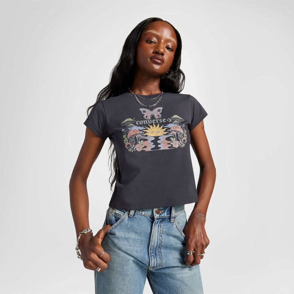 Tu camiseta de confianza se renueva con un diseño corto y holgado, ¡justo a tiempo para el calor! Los colores neutros clásicos e inesperados se combinan fácilmente con cualquier prenda de tu colección, mientras que los llamativos estampados inspirados en la naturaleza añaden un toque atrevido. Sal y explora el mundo con estilo.