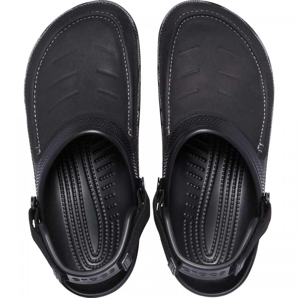 La parte superior en piel sintética y las tiras traseras ajustables aportan una pizca de robustez a estos Men´s Classic Yukon Vista II Clogs. La tira con sistema de cierre con velcro puede desplazarse hacia delante para convertirlo en un zueco fácil de calzar o en un zapato más seguro si se pone detrás. La plantilla y la suela fabricada en Croslite™ resisten en el campo a la vez que proporcionan verdadero confort en una barbacoa, de excursión o de vuelta a casa.