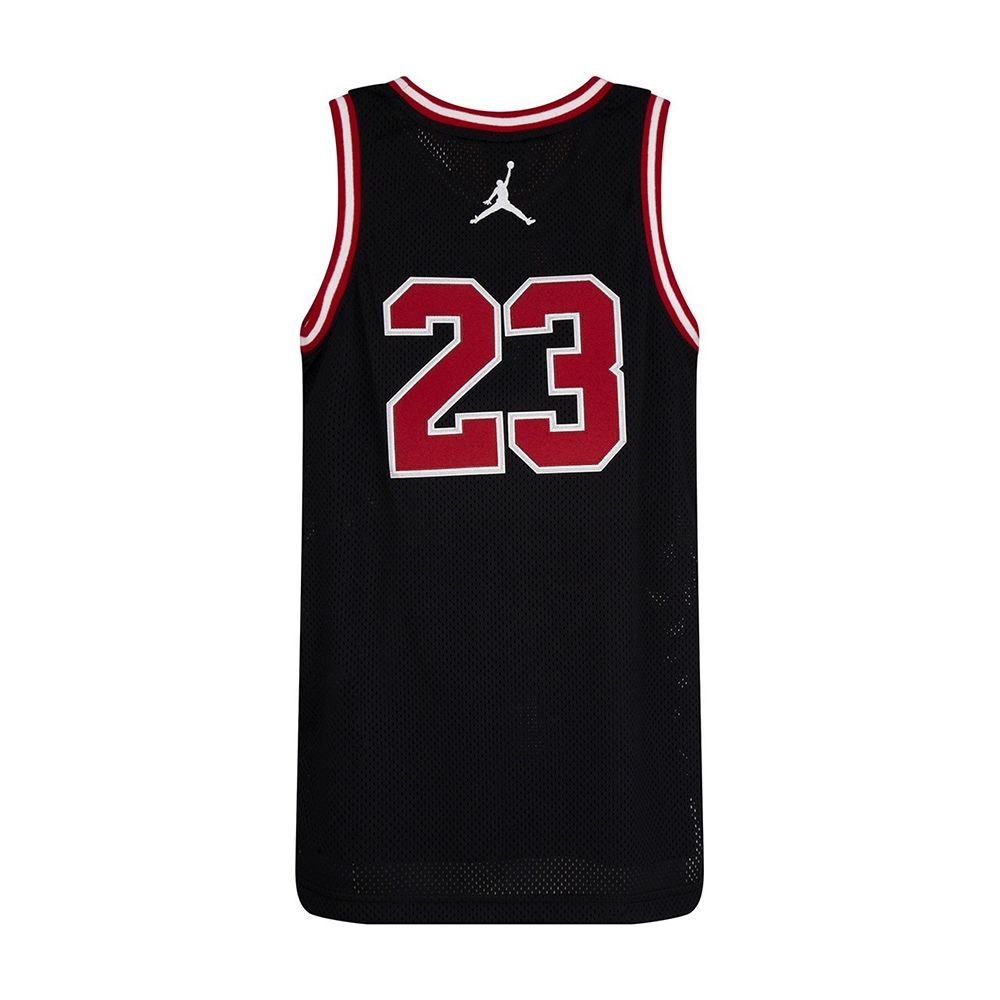La malla de punto ancho, el cuello acanalado, el nombre y el número termoaplicados y los detalles bordados inspirados en Michael Jordan y la Jordan Brand hacen de esta camiseta una perfecta tanto para jugar a baloncesto como para el día a día.
