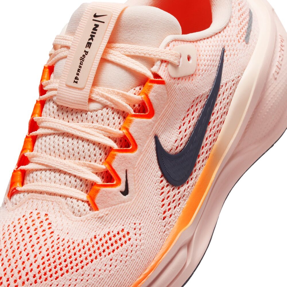 No necesitas hacer un sprint para sentir las ventajas de la Pegasus 41. Incluso cuando atraviesas el patio corriendo para alcanzar a los demás, la unidad Zoom en el talón da un impulso a tu zancada. Pero si quieres hacer resistencia, esta Pegasus también estará a la altura para una carrera larga. La espuma bajo el pie te ayuda a encontrar tu ritmo y mantenerlo. La parte superior de malla permite que tu pie se mantenga fresco para que puedas darlo todo en cada carrera.
