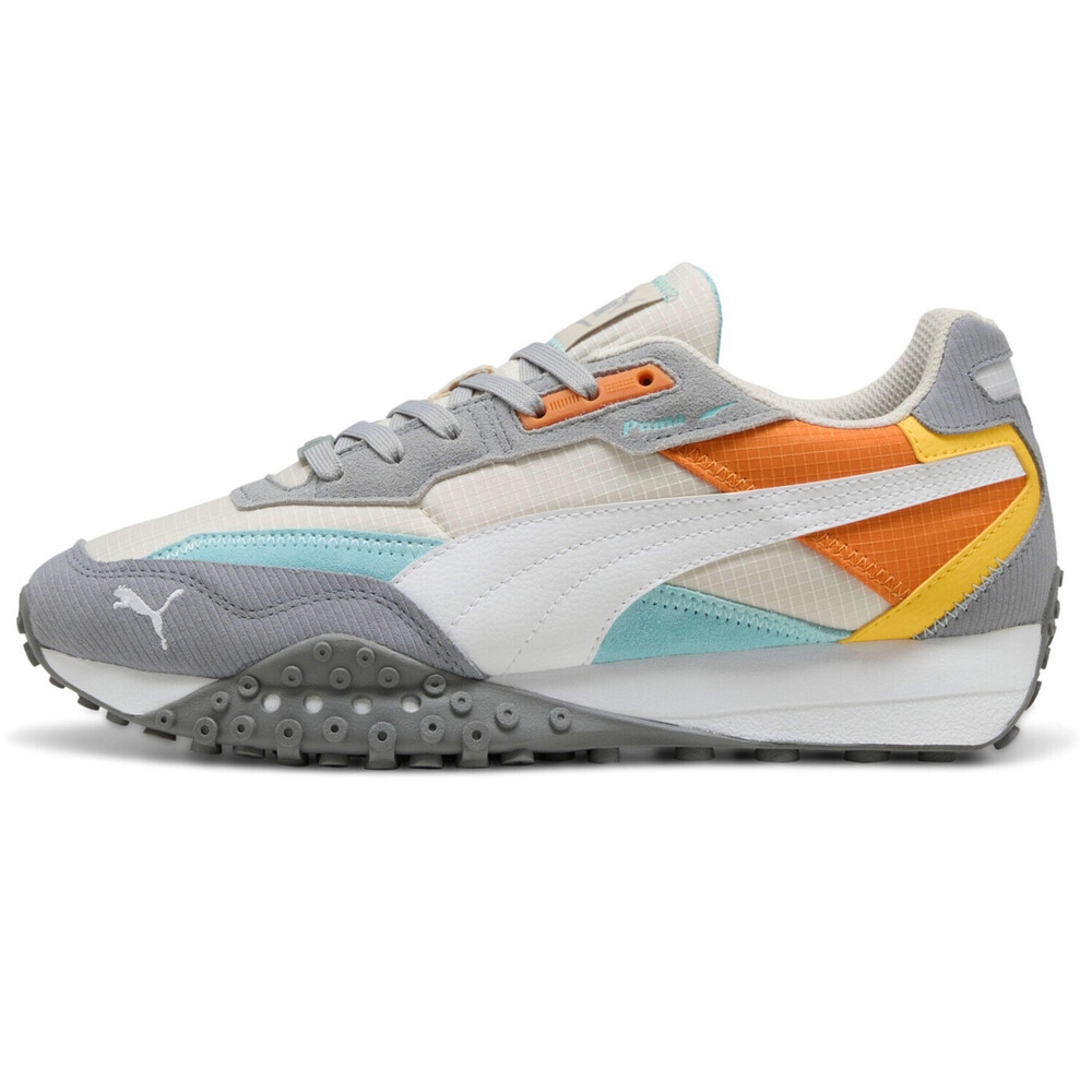Este modelo presenta una base de nailon antidesgarro con revestimientos de ante grabados y un logotipo del felino bordado en la puntera.